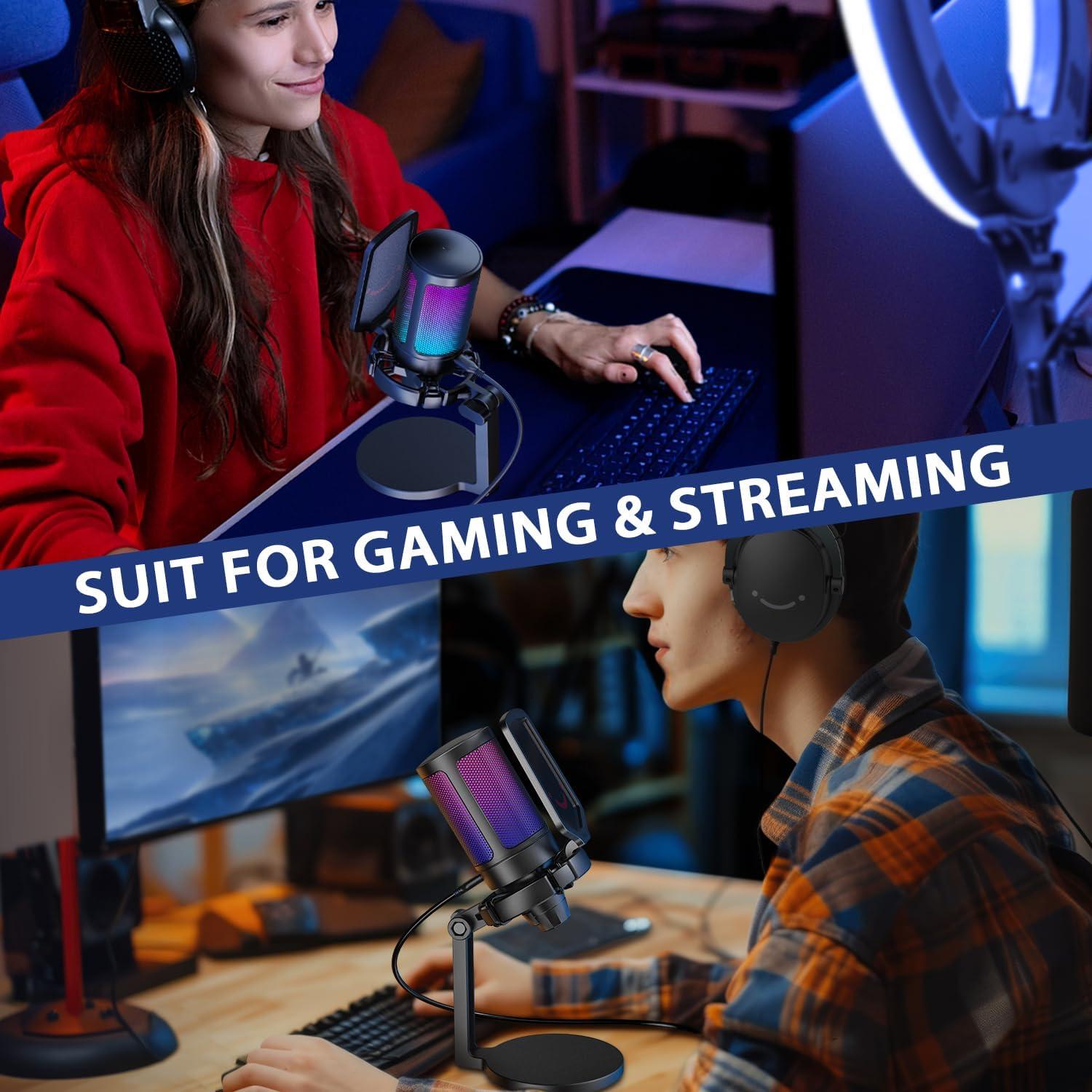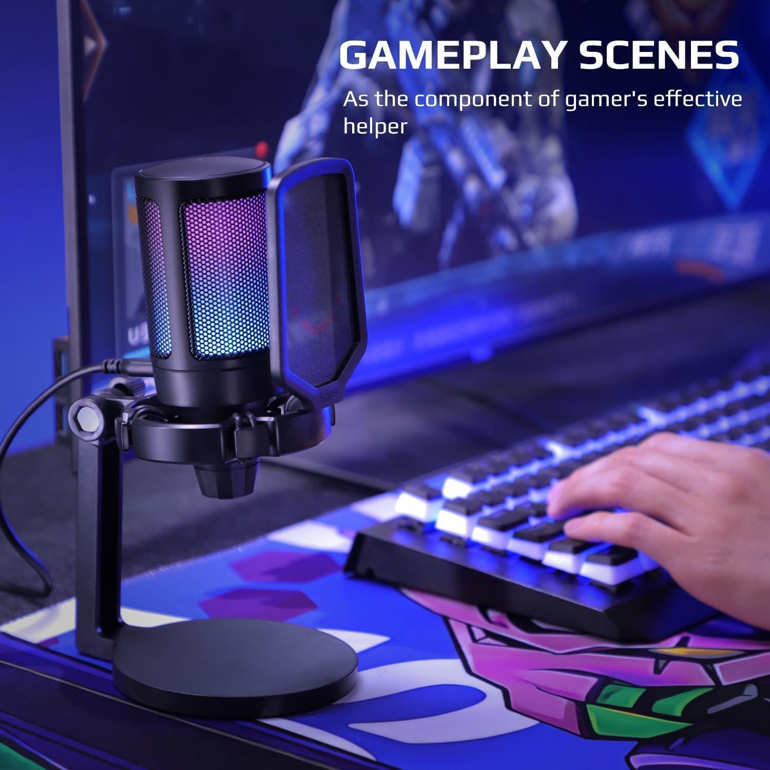 [RGB Illumination] Transform your gaming setup with the vibrant bicolored RGB lighting on USB microphone, which gracefully cycles through stunning color. The PC microphone not only adds a lively atmosphere to your computer setup but also immerses you deeper into the intensity of the game.
