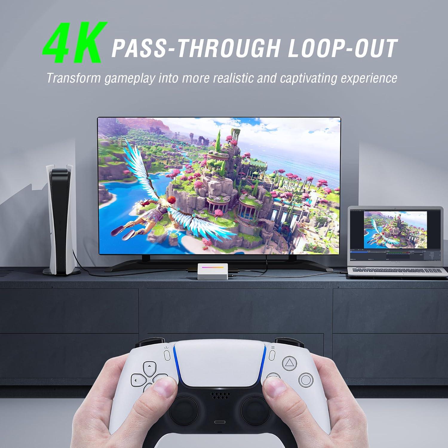 [Controllable RGB Lights] Add a touch of style to your streaming setup with variable RGB lighting on this switch capture card for XBOX. Customize the lighting effects to create an immersive gaming or live streaming ambiance that enhances your recording content. 9 kinds of optional RGB modes of USB capture card for PS4 can bring stunning visual effects to your gaming stream space.