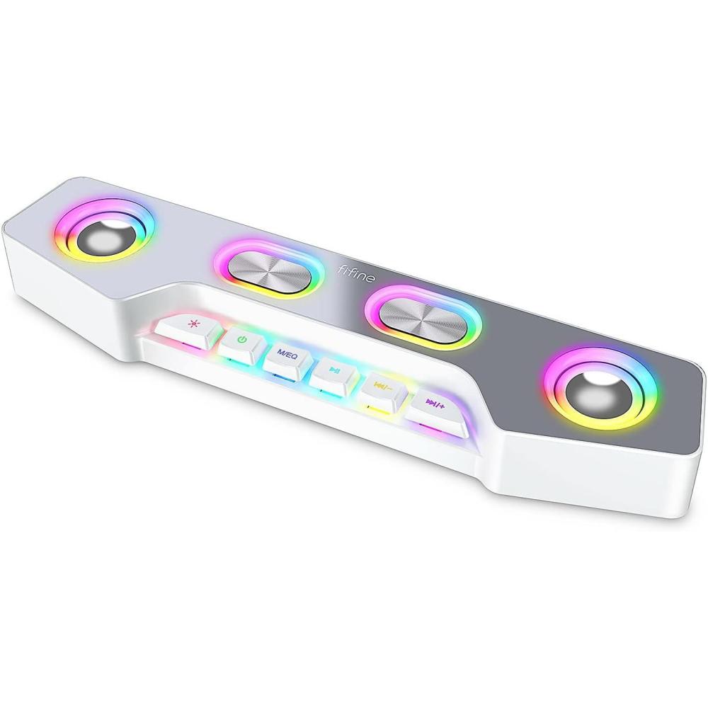 imageFifine Gaming Speakers for PC Bluetooth Computer Speakers Wireless with Auxin for Desktop Laptop RGB Desk Loudspeakers with Volume Control for Party Streaming Meeting A16 WhiteWhite